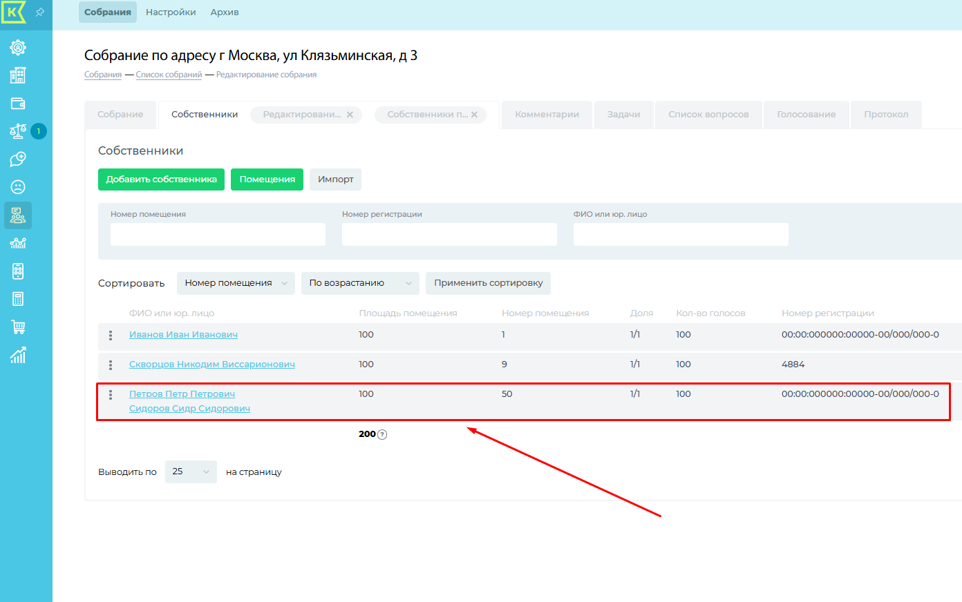 Копировать собственников из архивных собраний: