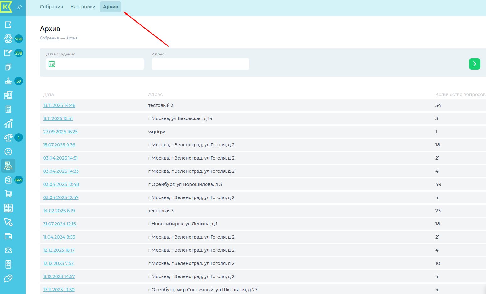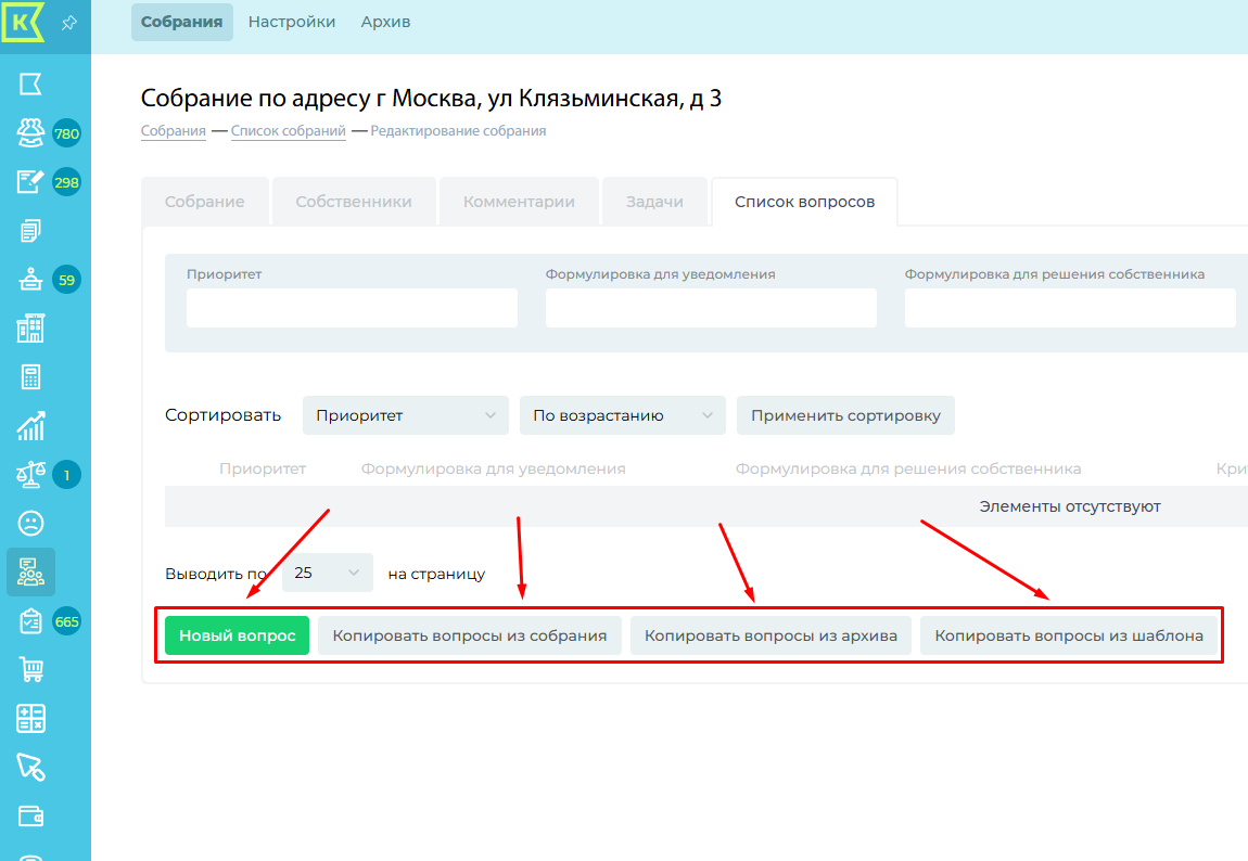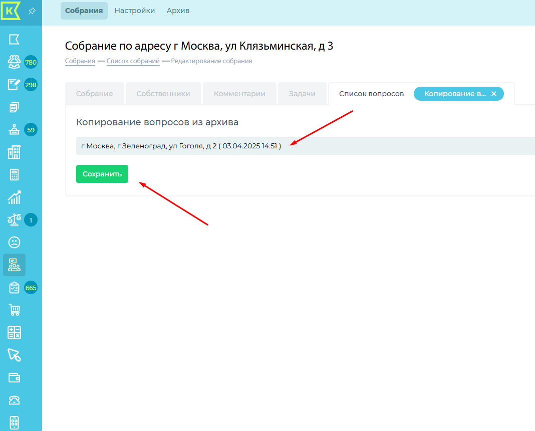 3. Скопировать вопросы из архивных собраний, проведенных до 16.11.2025 года