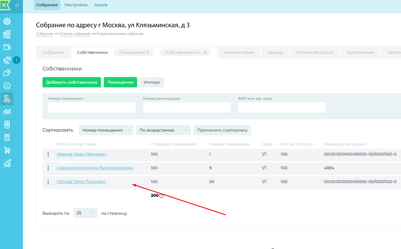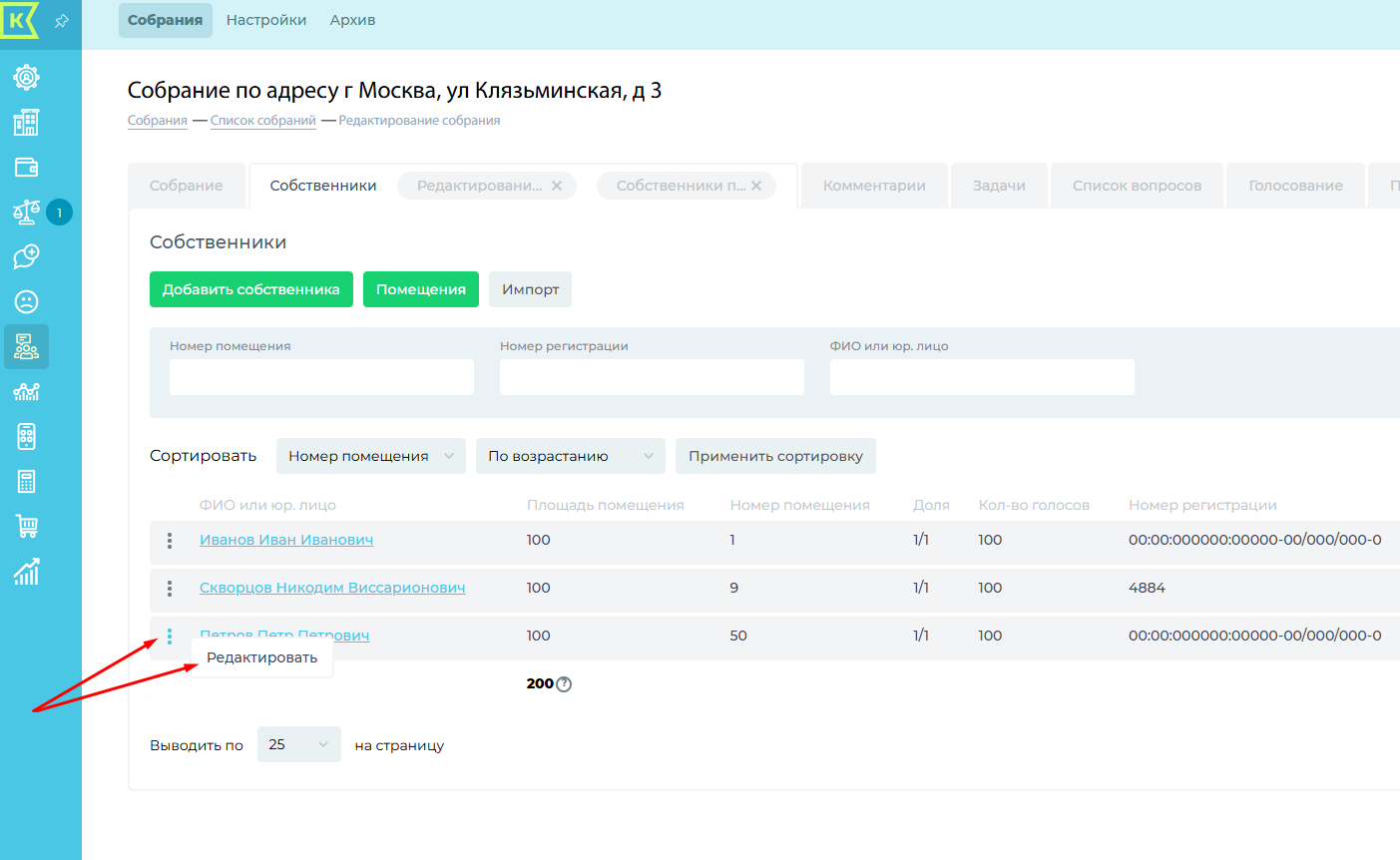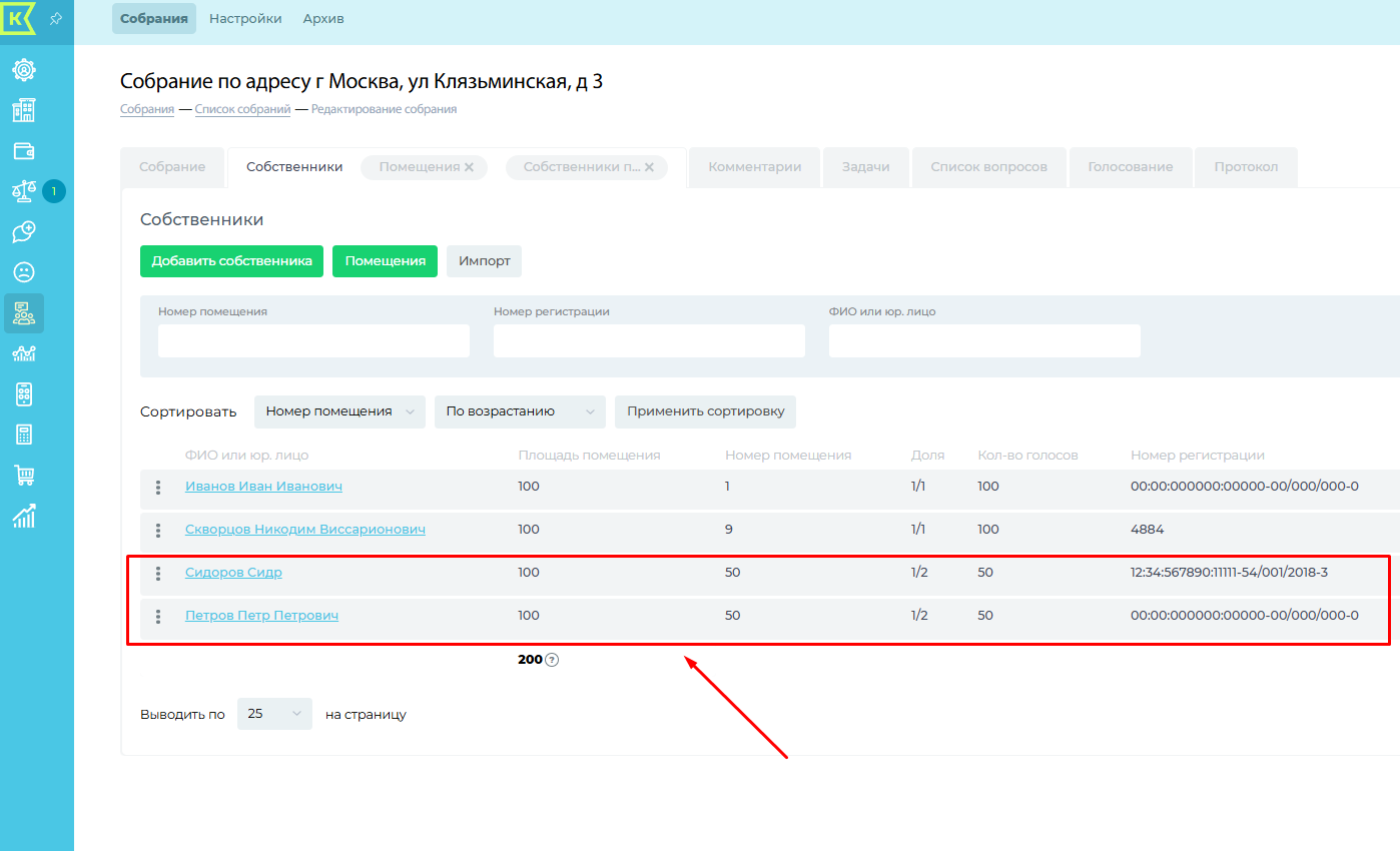 Копировать собственников из архивных собраний: