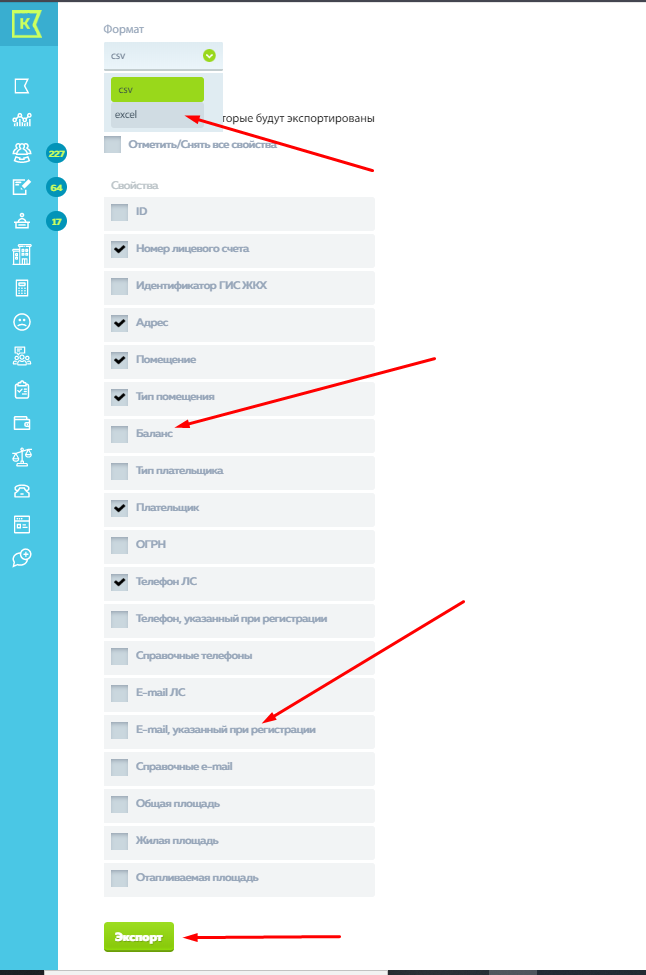 Экспорт данных по ЛС